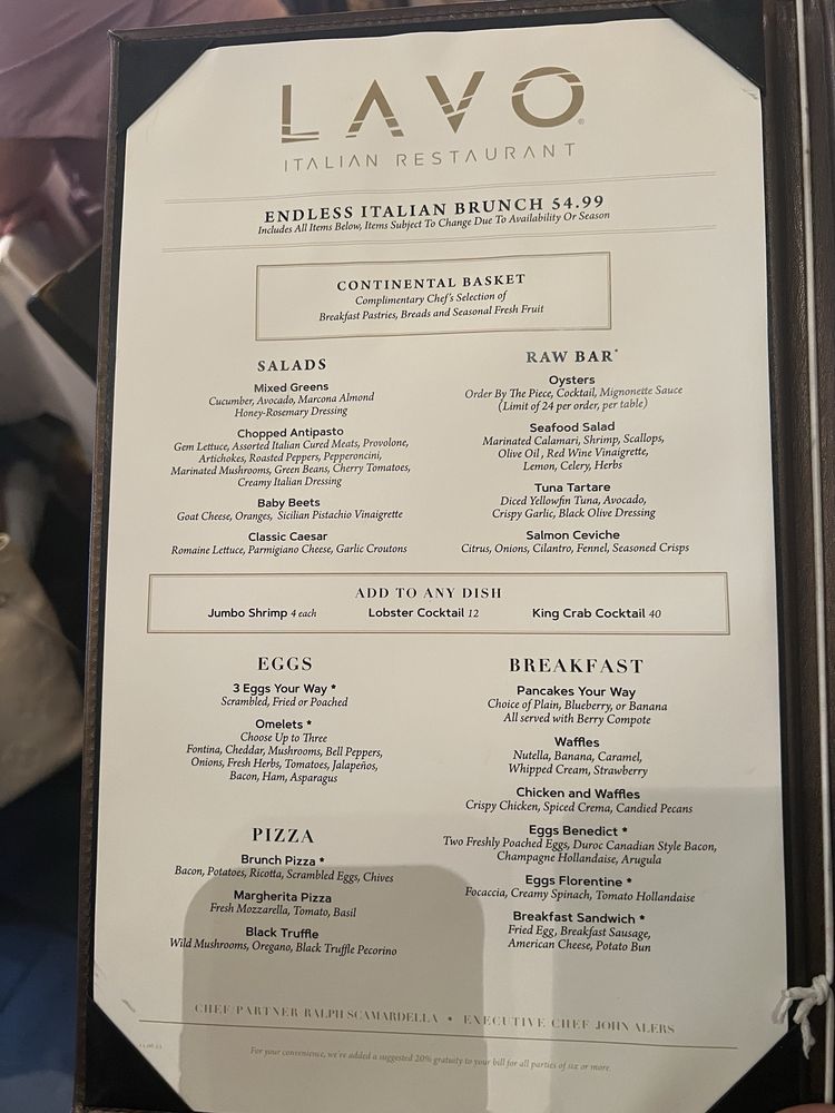LAVO Italian Restaurant in Las Vegas offers a trendy, classy atmosphere with a full bar and outdoor seating. They provide vegan and many vegetarian options, along with catering services. Located on the bustling Las Vegas Strip, LAVO is known for its delicious Italian cuisine. Customer reviews highlight the flavorful dishes like crispy chicken, seafood alfredo, and tuna tartare. The ambiance is described as cool and trendy, perfect for a date night or special celebration. The attentive service and attention to detail make dining at LAVO a memorable experience.Indulge in fresh seafood, pasta, and delectable desserts at LAVO Italian Restaurant for a remarkable dining experience in Las Vegas.